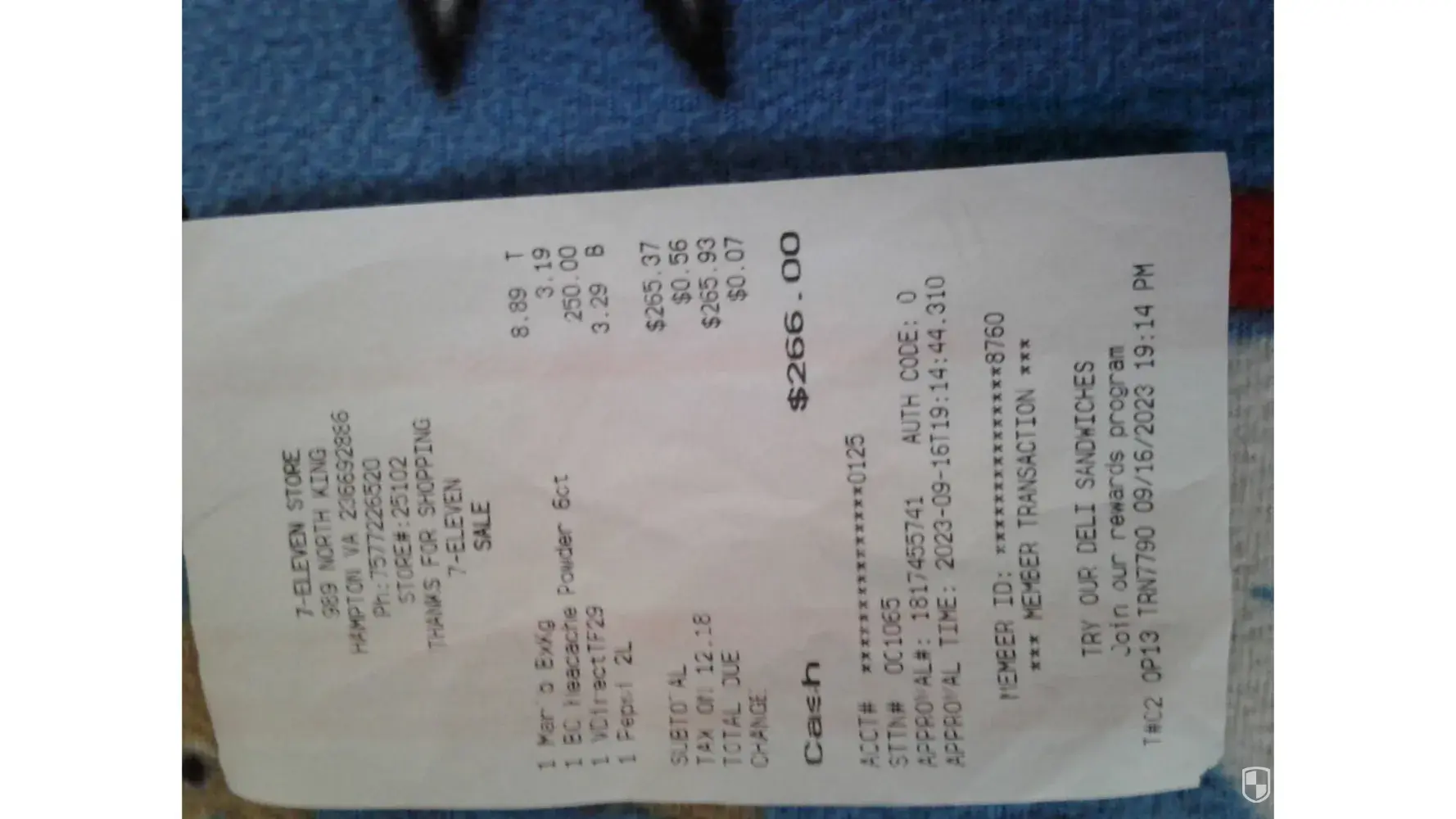 I went in last night 09/16/2023 at 19:14 pm to get a few thing's and load my cash app. The total was $265.93 I gave him $276.00 he counted it a couple of time's behind the register. He gave me my receipt and.07 cents. He was running both registers and waiting on me and another man. He was rushing it was kinda busy. I didn't even realize til later that he...