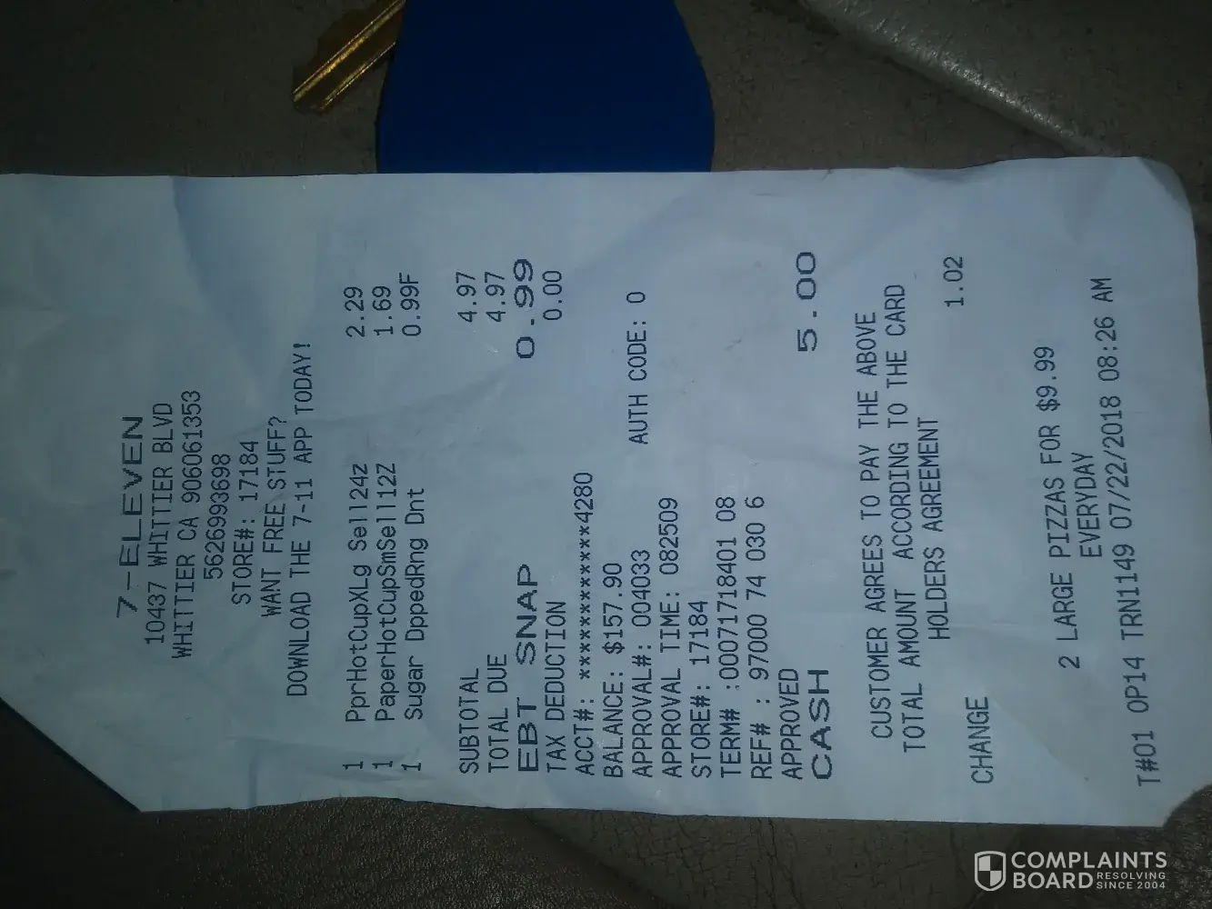 Made purchase early in the morning around 2: 30 a.m. for two hot coffees and a pastry went a few hours later around 8: 30 a.m. to make the same purchase and transaction and morning cashier declined transaction claiming paymen t method was not possible anywhere for hot food. I have a copy of both receipts for both visits with receipt number one clearly showing purchased items and method. morning cashier was very rude and very adamant and was very unprofessional with other customers around as the dispute was very public... attached are two photos of receipts both one and two of incidence notice number one payment method was ebt and items purchased photos to items purchased and force payment method being cash