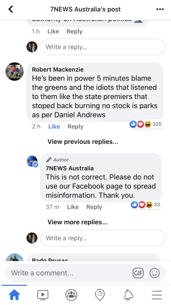 Official 7news Facebook admin contributed to a discussion in the comments section of one of their Facebook posts. Disappointing to see such a level of unprofessionalism in the seven network as the admin of the Facebook account decided to become an active participant of a politically charged argument in the comments section. Please see the photos attached to the complaint.