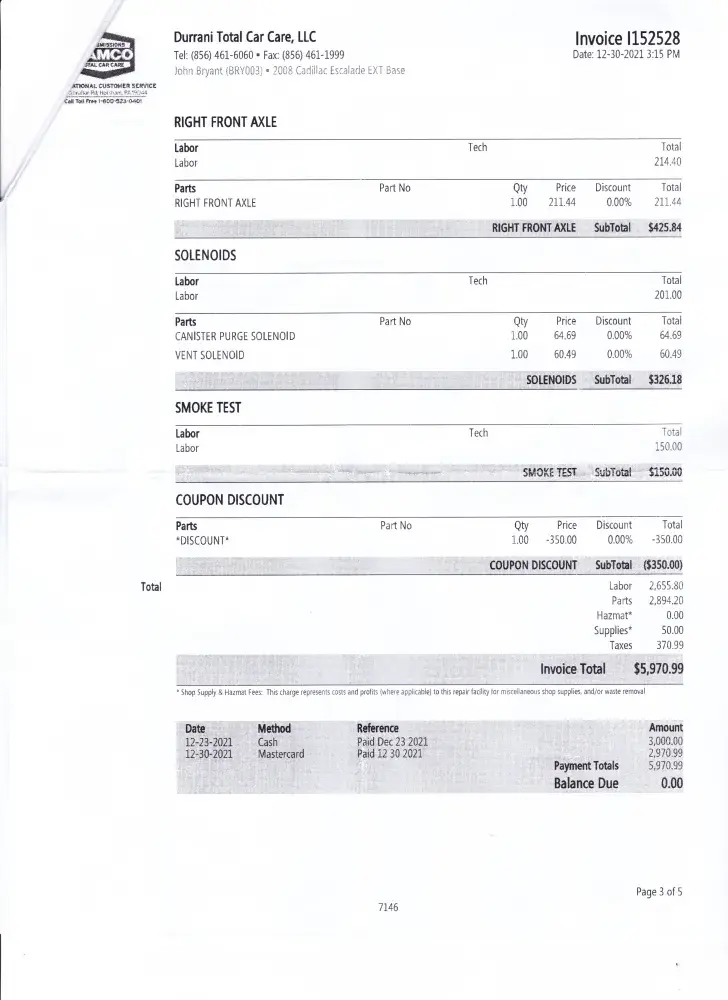 Paid $1041.88 for repairs. Invoice # 112446