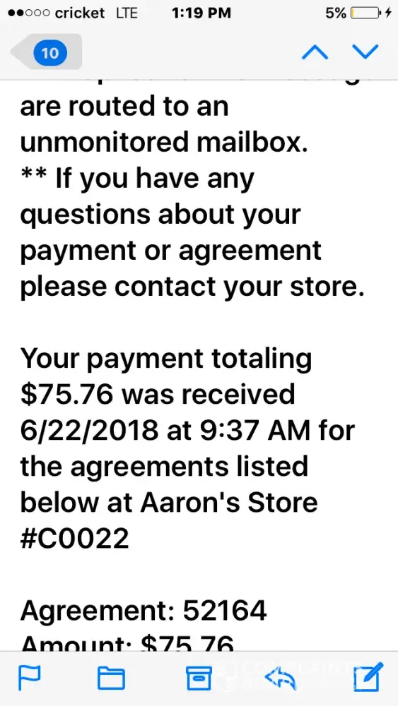 I recently submitted a concern online to aarons and it was sent back. Why is that? I have been harrassed and treated very poorly from you guys. Here is a copy of the ticket I submitted. the reference number is Your customer service request has been opened.