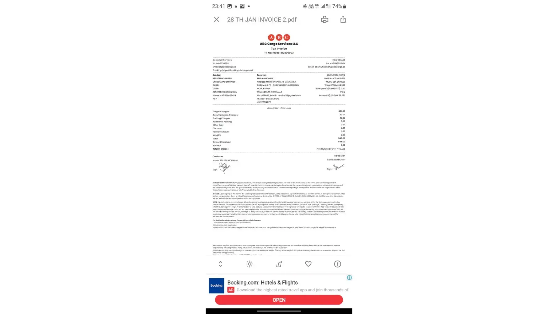I have booked a consignment from Dubai to India on 30th January 2023, but still today 19-04-2023 have not received the consignment and after many calls got an update yesterday that the consignment is delayed in the customs for last 75 days. Very irresponsible and poor service from ABC Cargo. I will never ever send any consignment through them and will inform all my friends and relatives not to send anything through ABC Cargo