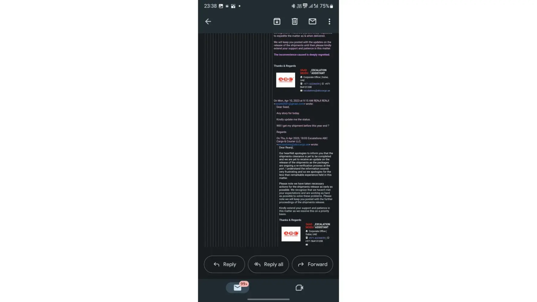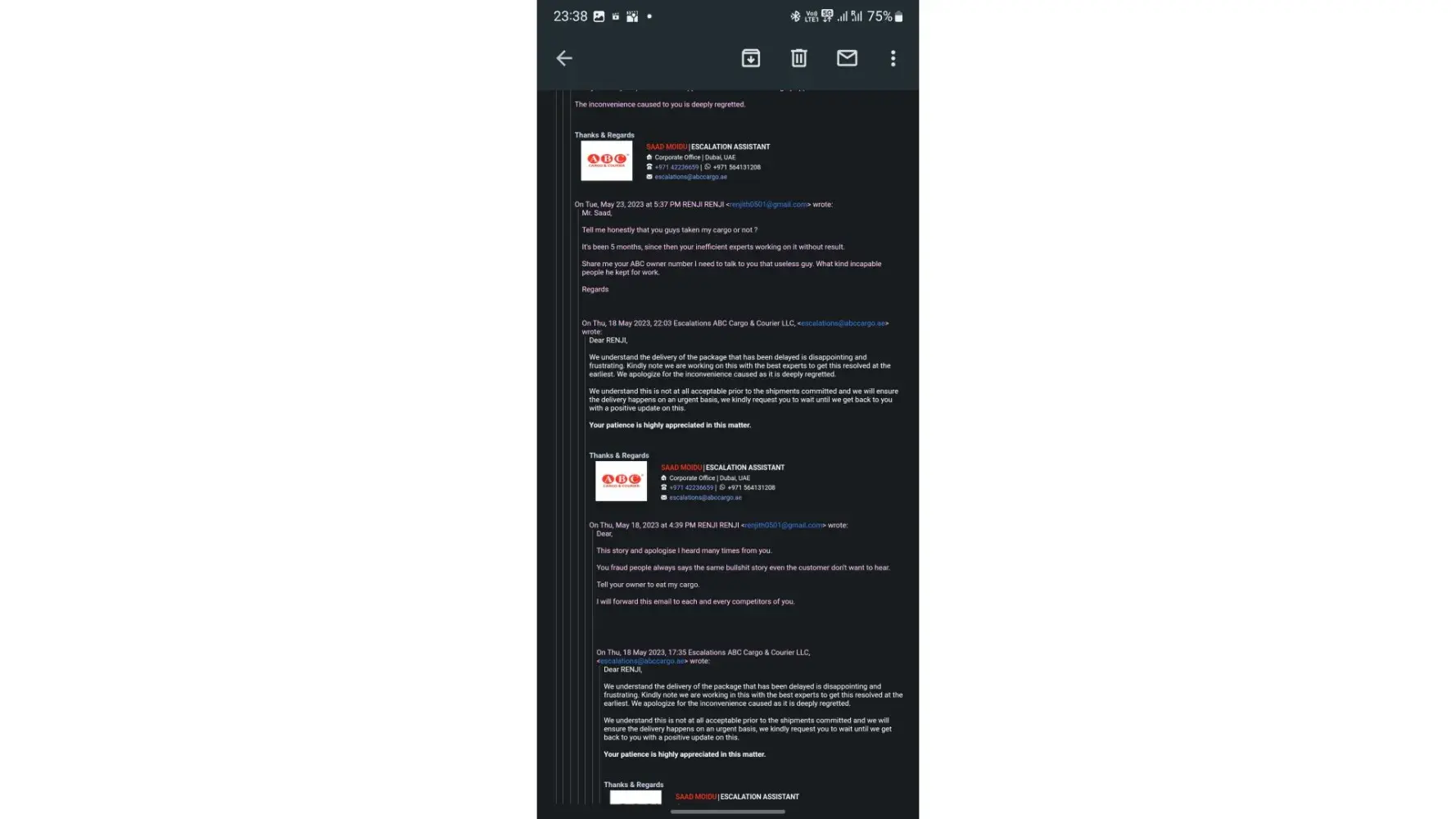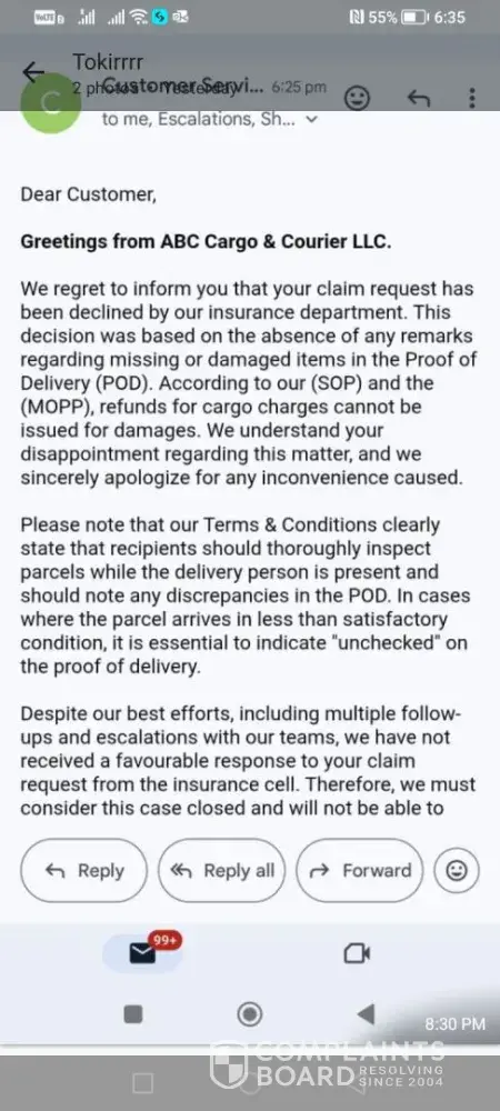 And I have seen reviews of other people suffering from similar issues, So ABC Cargo guys don’t reply back only on review attaching your email ids showing your fake concern by claiming to resolve the issue, As I have already contacted each and every one of you.