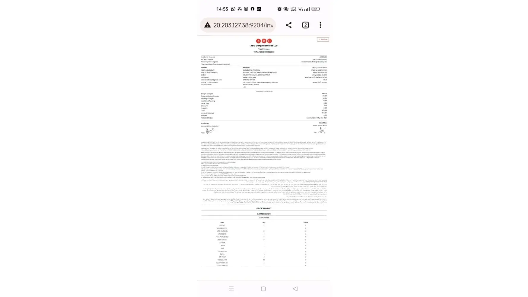 Displayed as completed they left my home. They didn't provide me with any bills despite of asking. Its been 11 days and upon enquiring I found the box is still in Dxb on 11th Oct. Upon investigation no one had a clue what happened. You have lost my trust, my time and damage of quality of items worth 1000 dhs. This is 2nd time this is happening last time you left the items somewhere where items reached India which all items eaten by rats. What I understood is that you lack of commitment and irresponsible behaviour towards expat valuable items to their loved had been taken for granted. I had reported the same to Saad. This is my first and last time to use your pathetic svc. I will def make sure this is spread by word of mouth and social media.