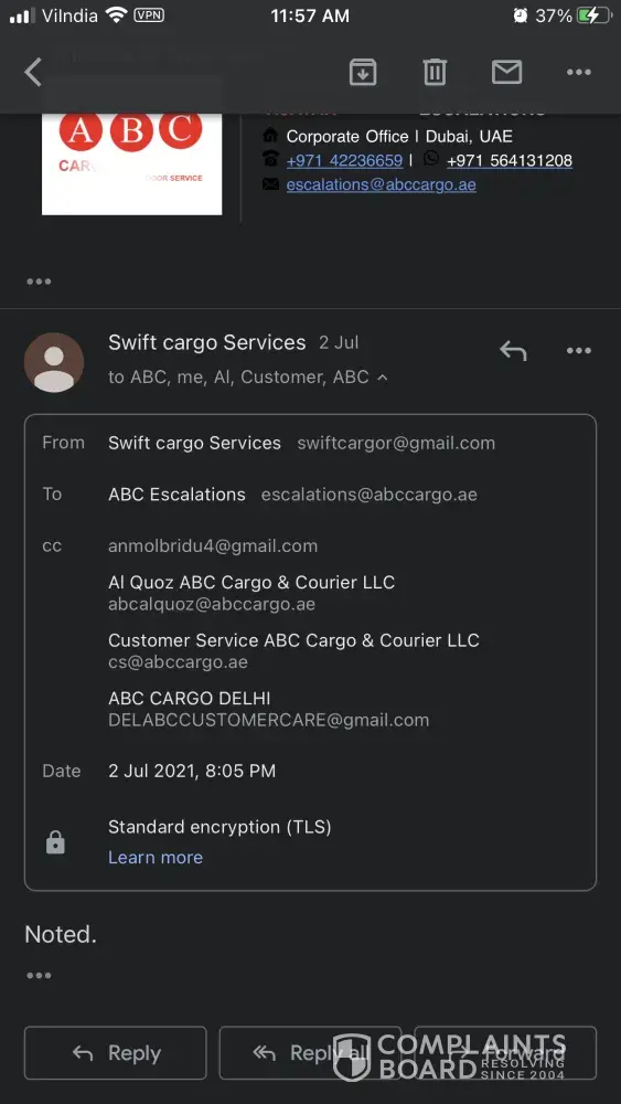 The purpose of lodging this complains is to forewarn all the customers who have plans to ship their cargo. Never think of using ABC Cargo Dubai as they as truly freight charges and thereafter customer is at the mercy of ABC