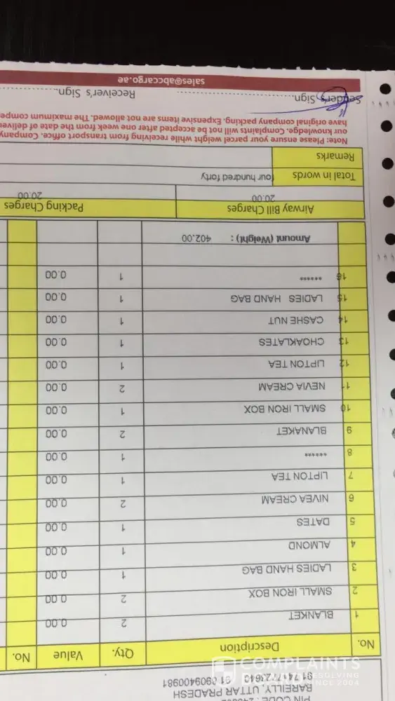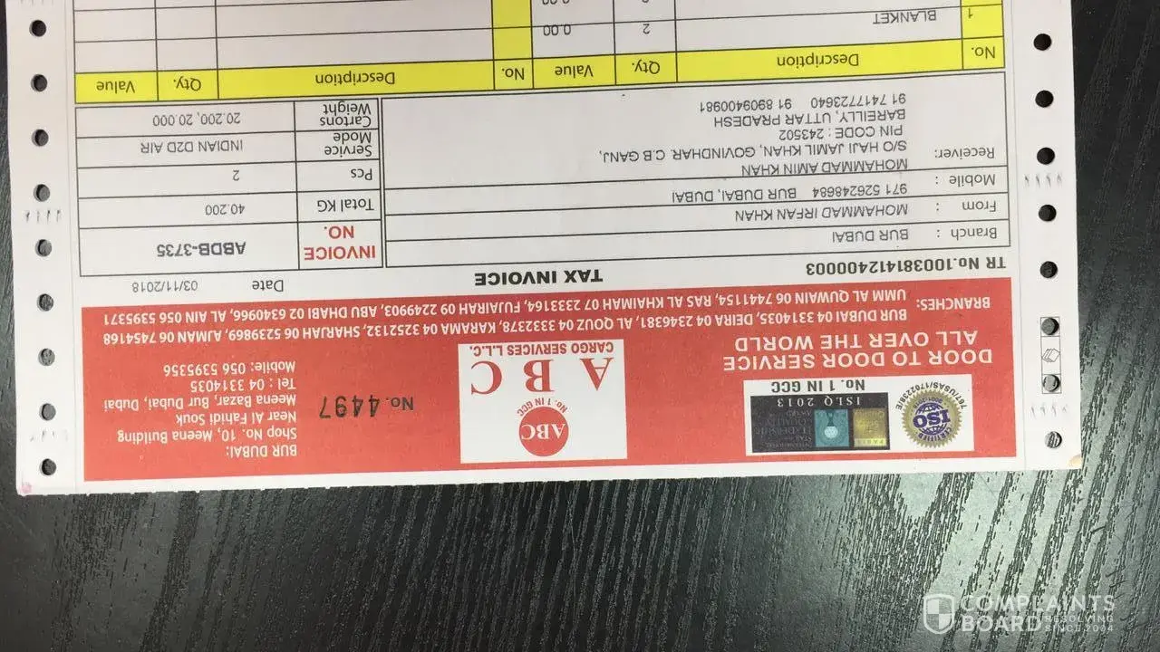 I think these kind of complaints are pretty normal for abc cargo. Here are some details on which I would like to know the answers.
