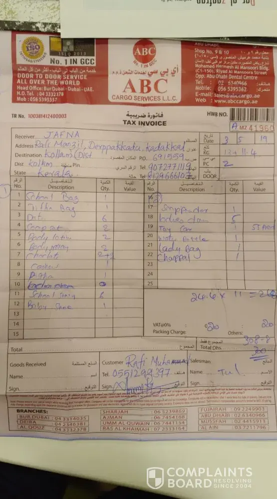 ABC cargo is the worst, unprofessional and unethical company in the whole of Middle East, Please do not send your cargo items as several of my crockery items, show piece items were broken and when complaint to customer service there was no response and keep dragging for days. I have raised a consumer complaint and hope I get what i deserve after my cargo reached 4month.