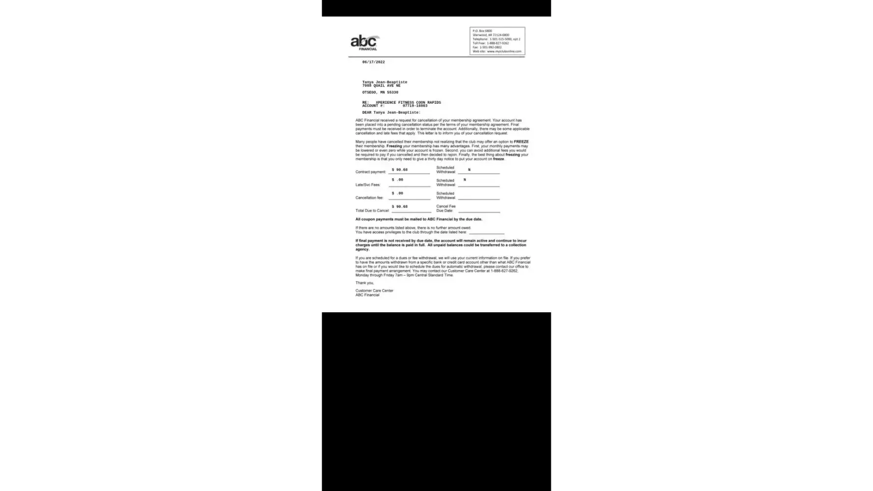 ABC Financial Services Xperience fitness in blaine stole my money by not canceling my daughters account, fraud