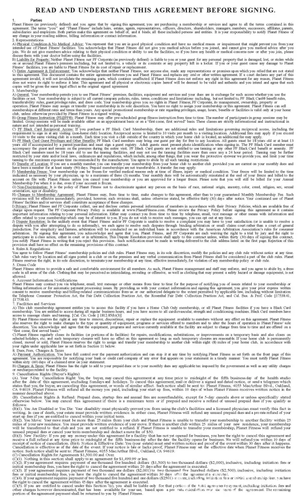 Planet fitness gym membership cancellation policy