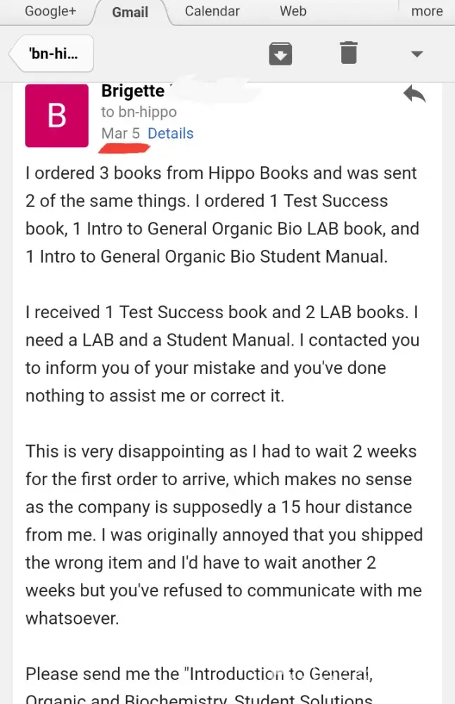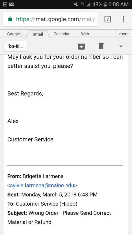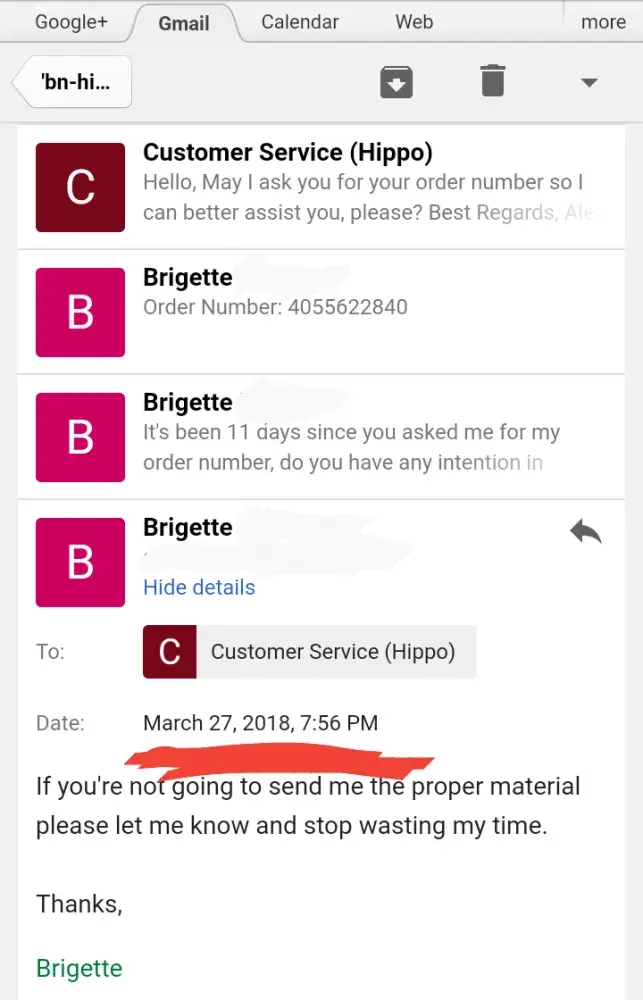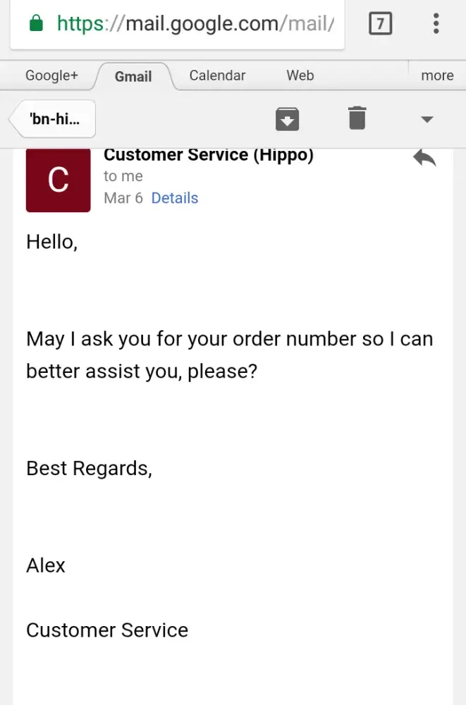 3. Didn't get a response I sent to my email I sent on the 25th of February until March 5th and it was a 1 or 2 line message asking for my order number.