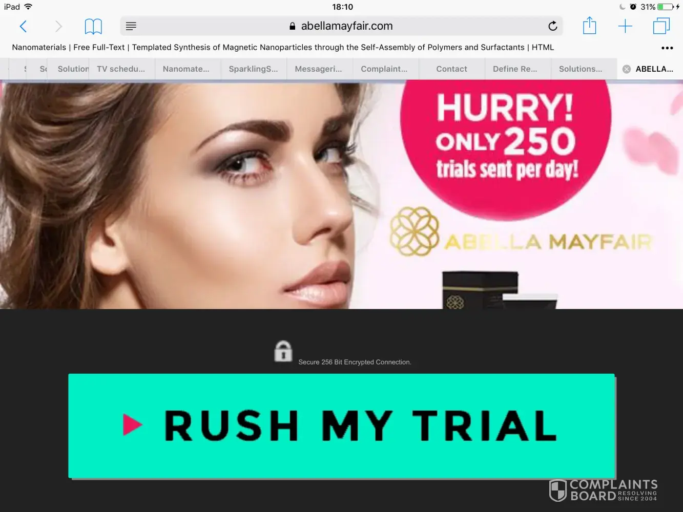 offer a free trial sample for shipping of $3.95 - suppose to be a Canadian co. but they charge the $3.95 in USA dollars (whatever the going rate is - today it was around $5 processed to my MasterCard). All looks fine and simple - until you find the list of complaints about the negative option billing. They start sending regular size without your consent, and put large charges through your Visa/Mastercard BEFORE you even receive the "free" trial. Thank you to all of you who took the time to post your experience here. I immediately called them and cancelled my order. Then I called MasterCard, who confirmed that the co. had pre-approved by MasterCard, but the cancellation was also showing a few minutes later. So if you have ordered the free trial, call Abella Mayfair and get a cancellation confirmation #, then call your Visa/Mastercard company and make sure the charge has been reversed.