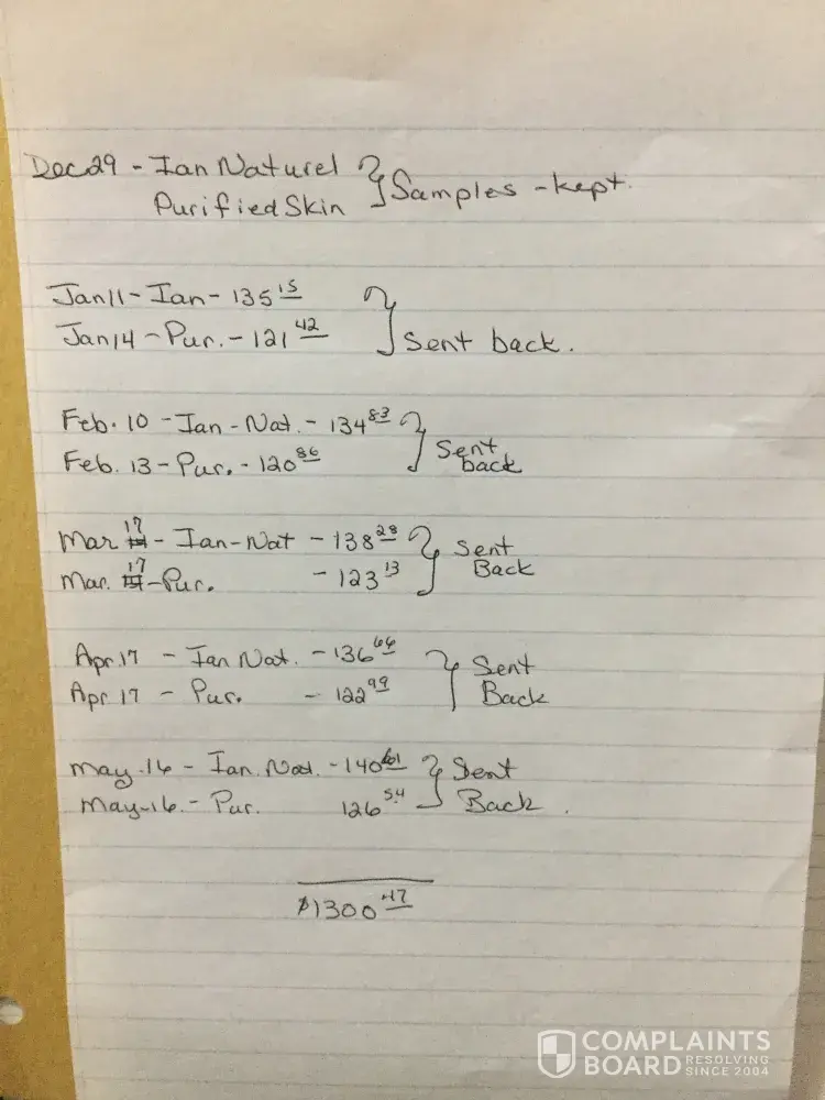 I have not authorized any purchases. I ordered a sample which was received and since then, have received 2 shipments and excessive charges on my VISA. This is poor business practice, and frankly the product is not what I expected, or is cracked up to be. The wrinkle control makes your face feel stiff and uncomfortable - it doesn't get rid of wrinkles. Plus you need to reapply later in the day for best results, but again, skin feels crappy.