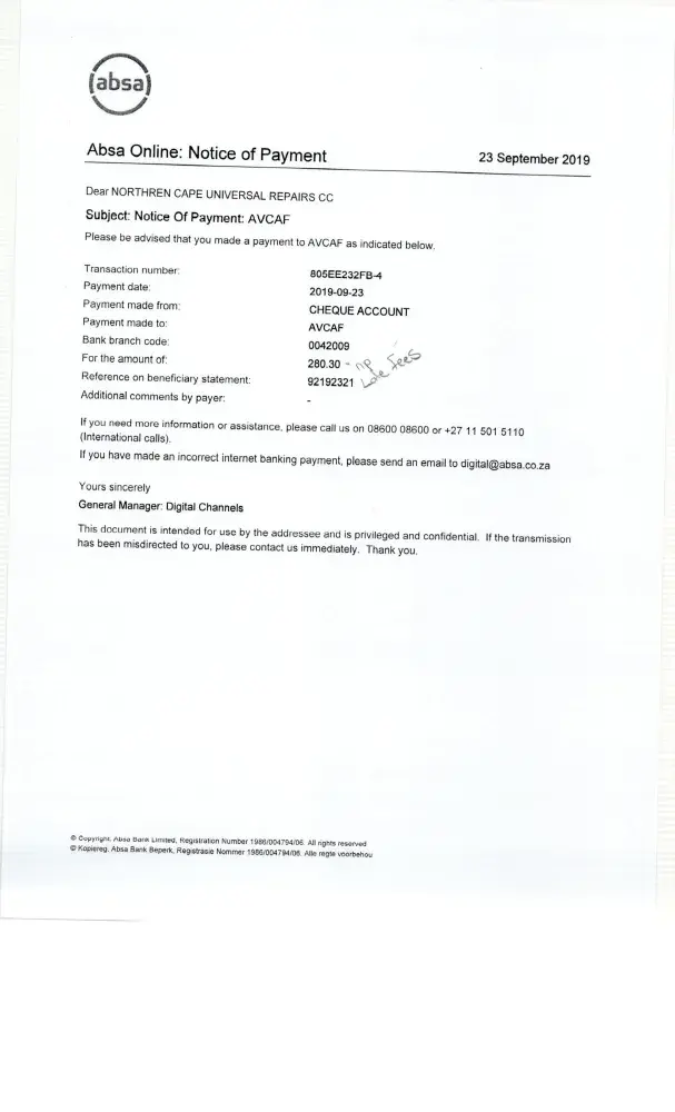 Bank: ABSA.