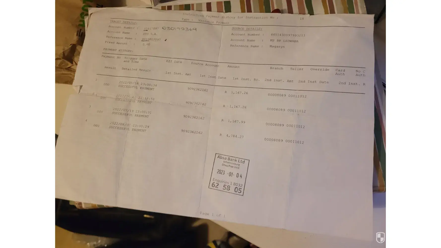 ABSA Bank Payment to a wrong account number