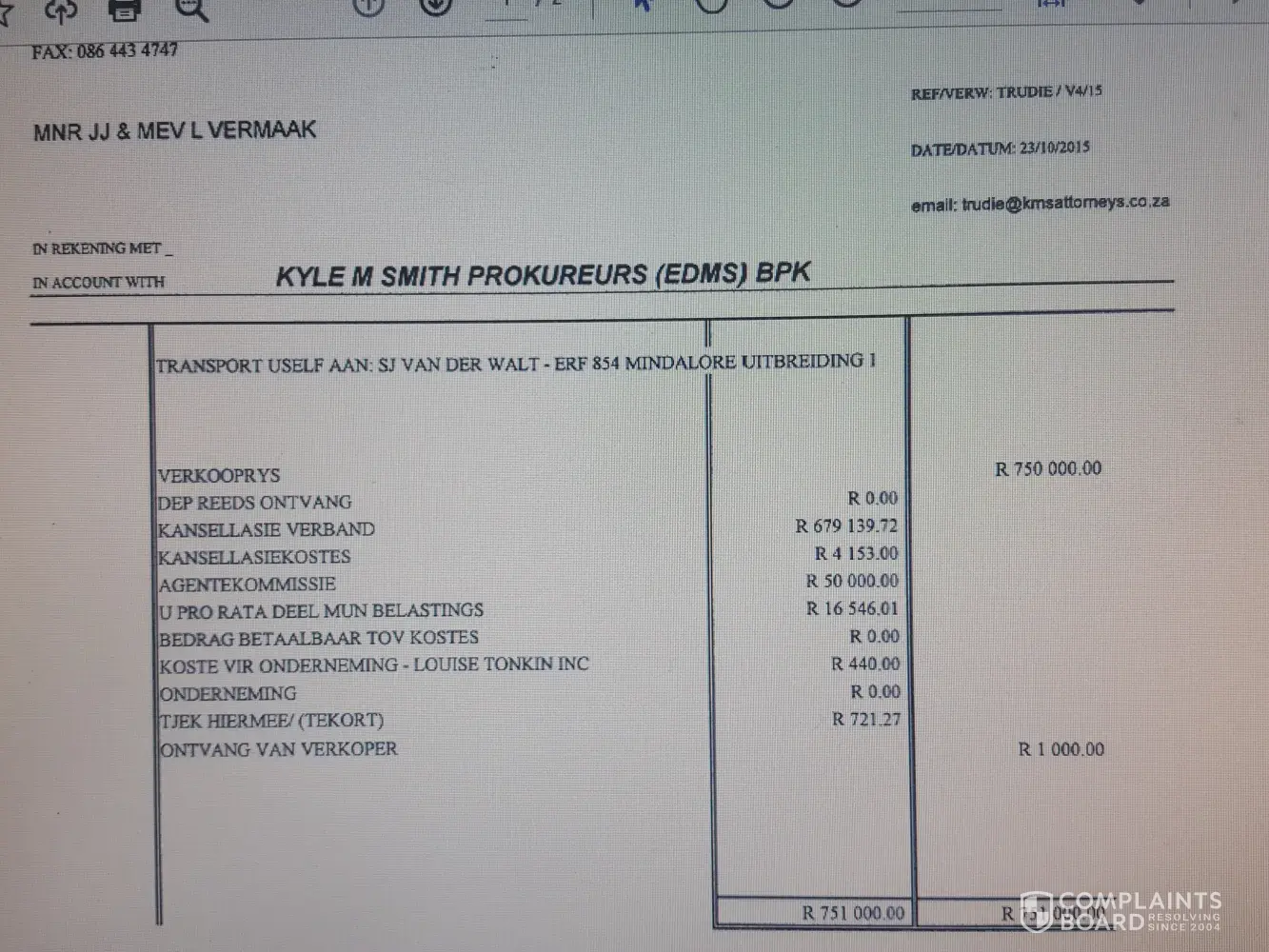 Attached is a statement from the transferring attorneys confirming everything was settled. I myself is a debt collector, and you are not able to phone for outstanding money if you are not able to produce a statement to the client!