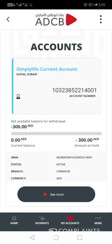 Abu Dhabi Commercial Bank [ADCB] I am complaining about my current account