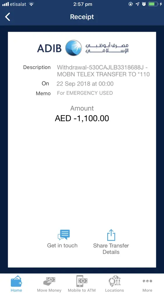 I used the mobile banking app to send money to the other bank/beneficiary. I sent to two beneficiary the first was on 19th (200aed) and second was on 22nd (1, 100aed) of this month. It was successfully transact and it instantly deducted from my account balance and so thats why Im expecting that everything will be fine. So I contacted my friends if they get the money they responded to me that they still didn't get it. So we wait until the weekend over. On Sunday (sep 23, 2018) a 200 aed got credited back on my account and I asked my receivers if they get it already and still no, none of them got those amount on their card. I kept calling customer service from ADIB and they kept telling me the same thing around to wait for another 24 hrs for the transaction. Ive heard a lot of options that they will contact the beneficiary/ other bank if they can check and give me a call but still I didn't receive any call back til' now. I even thought to cancel but they said they will charge me for 100 for cancellation. On my side why I am writing this complain, in the first place it's not even my fault. What is the reason why they made this mobile banking app? to provide an easier and faster transactions right? All I want is, to get/return the pending amount back (1100aed) that is still afloat. Thanks