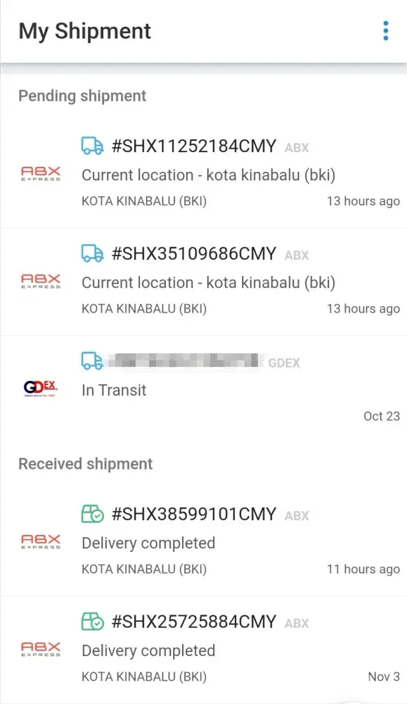 Selamat pagi, saya adalah pengguna abx express dari kuala penyu, sabah. Saya telah menempah barang dari luar negara dengan nombor traking shx60576257cmy. Pada jam 10 malam saya melihat barang saya telah di kemas kini barang berjaya dihantar. Tetapi, saya belum melihat dan mendapat barang tersebut. Bagaimana saya harus mendapatkan barang saya kembali kerana barang itu sangat penting untuk saya dapatkan secepat mungkin.. Terima kasih