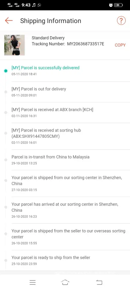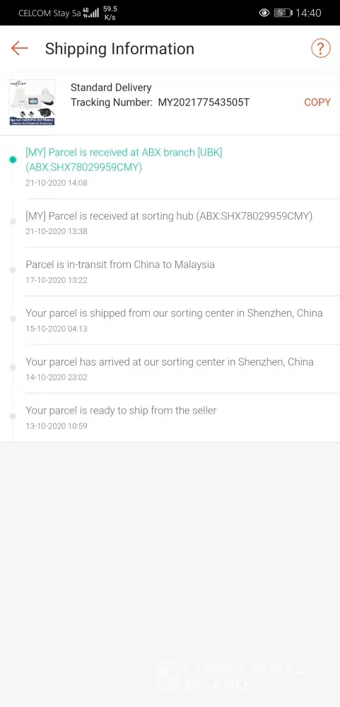 So, my parcel (SHX78029959CMY) reached UTS Logistics Sdn Bhd in Jalan Kolombong, Sabah on 21/10/2020.