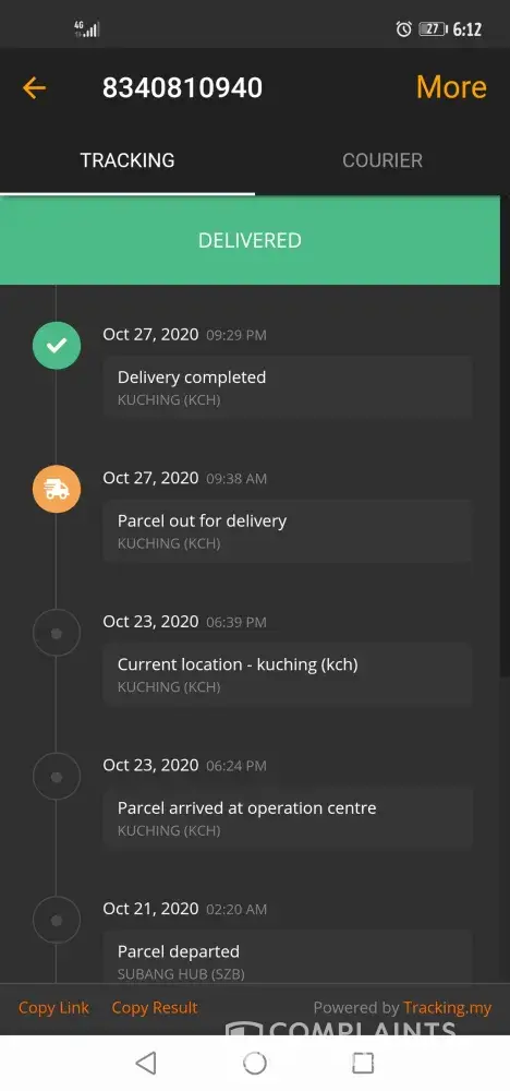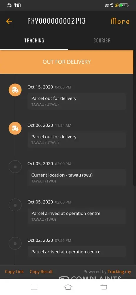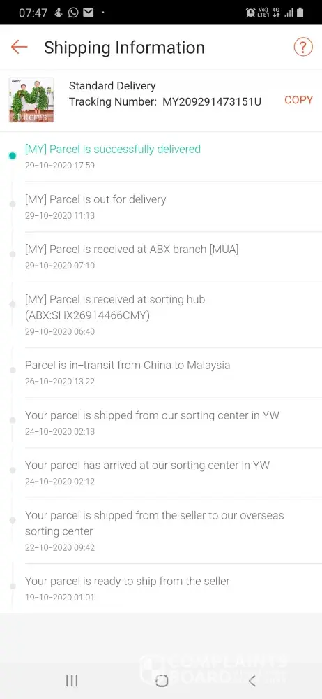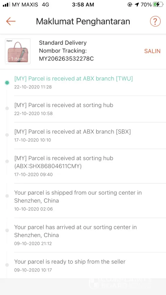 My parcel arrived on Oct 19th 2020. But until today Oct 29th, I still bot receiving the parcel. ABX courier not concern at all. should be fix the time, even in CMCO, other courier still doing great job, even poslaju. Pls, fix this problem.