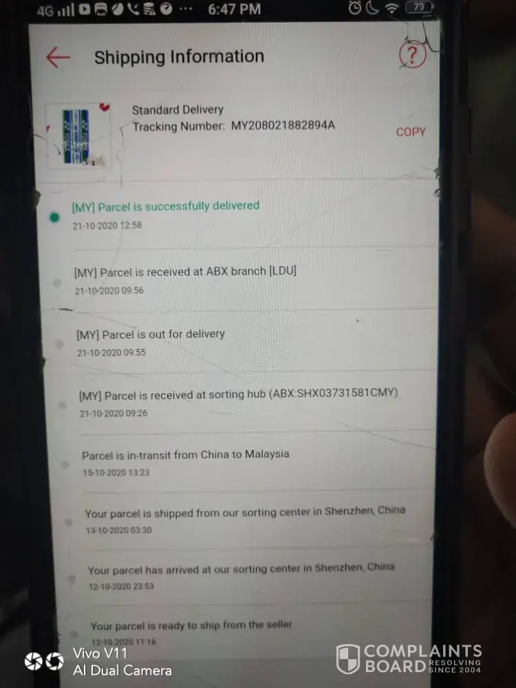 Shx80268384cmy. I didnt received my parcel yet. But at tracking status said that my parcel is successfully delivered on 14 october 2020 at 6:33 pm. I already made several complaint since 15 october via email and abx website. But until now I didnt get any feedback from abx staff. I hope my problem will be resolve as soon as possible. Thank you. My phone number: [protected] Kuizzatul Maisarah