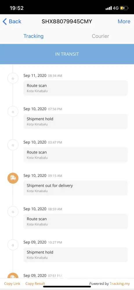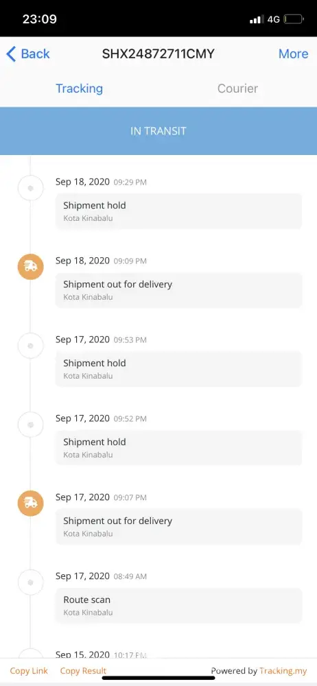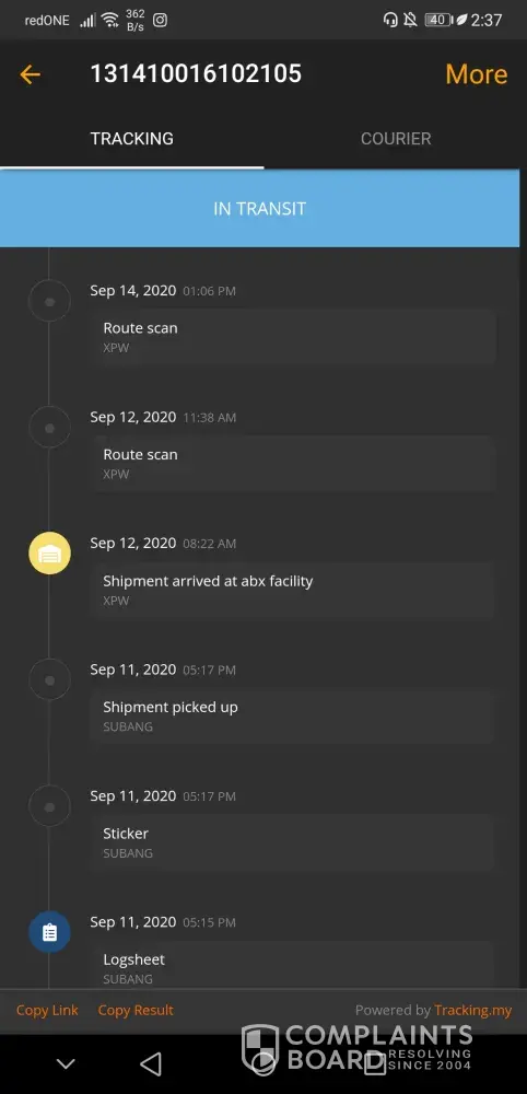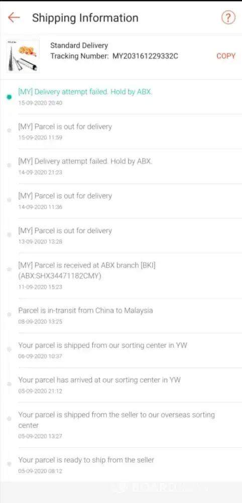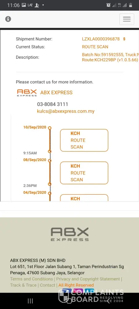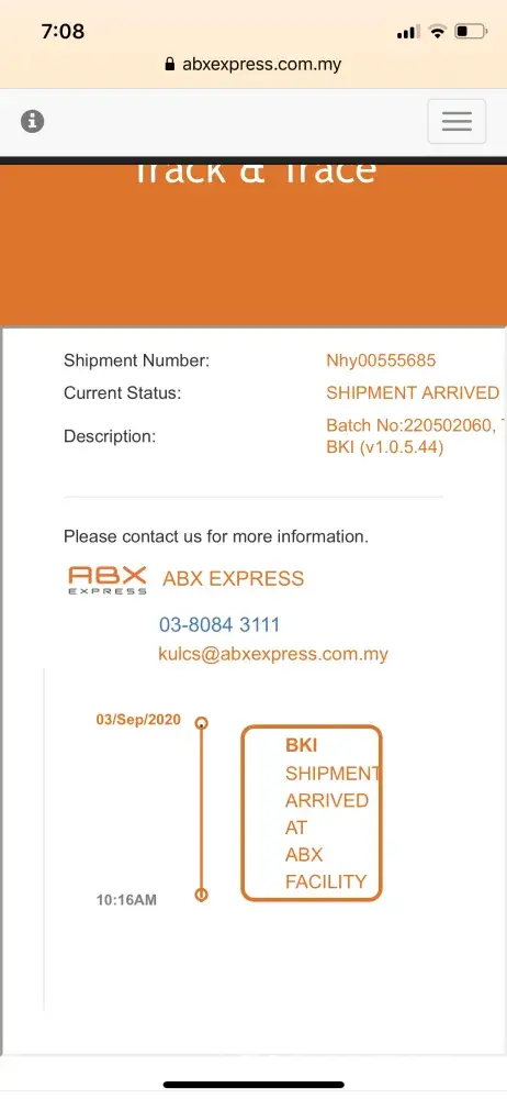 On 17/09/2020 called ABX about the parcel. The staff informed that they outsourced the delivery service which this runner is "normally" late in delivering parcels and always holding parcels for too long?!.
