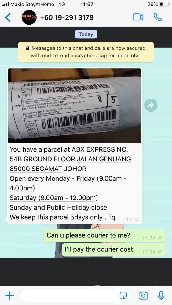 Above conversation from Encik Sidek [protected] (person in charge of parcels for Bentong Abx branch)
