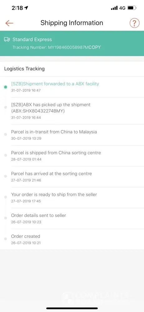 I placed an order from shopee on 04/08/2019 and the goods arrived from China to ABX USJ on 10/08/2019 but i did not see any delivery updates since then. I called ABX on 15/08/2019 to report the delay and was told that the delivery will be made in another two days but until now, 21/08/2019 i have yet to receive my parcel. No one is responding to my call either. And i did pay the shipping fees.