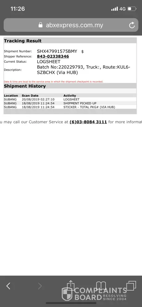 No shipment update since 13 Aug 2019! The parcel arrived in Malaysia on 7 Aug 2019 and it has been lapsed of almost 2 weeks time, i still didn't receive my parcel. As per above shipment history, the parcel was stucked at ABX Cheras since 13 Aug 2019 for unknown reason.
