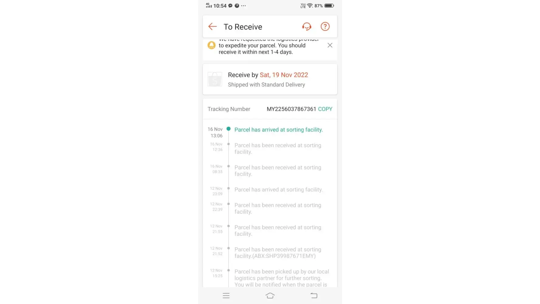 Hi, I would like to complain about my delayed parcel by ABX. My parcel has been arrived at sorting facility since 17.09.2022 and not delivered to my addresss up until now 20.09.2022. The item is from shopee and the courier stated is ABX but the given information about tracking number is invalid as I had checked the tracking number, is unavailable/invalid. The tracking number given is SHP63122693EMY. I HOPE THIS CAN BE SOLVE IMMEDIATELY AS I WAITING FOR A WGILE FOT THE ITEM TO BE DELIVERED.