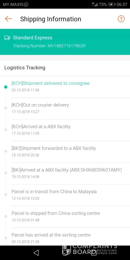 Hello, I should be receiving my parcel on 29th of November 2018, my tracking number is SHX05580133AMY. However, I received a chat from stranger saying that my parcel was in front of her aunt's house, she saw my number stated, so she chat me on WhatsApp. I was so confused at that time because I live in Kolombong, Inanam, but it's weird that the parcel was sent to Penampang, which is quite far from my place. Luckily, the person who chat me was kind enough to contact me and we met at a place so she can give me back my parcel. I don't want any refund because my parcel is looking fine as it should be, but my advice is please look more carefully when sending a parcel to someone's house. What if the parcel is something valuable and the one who shouldn't receive the parcel has the desire to take the parcel for himself? Anyway, this is not my first time using ABX. I've used ABX before and there's never anything like this happen. The service was always good and they always delivered my parcel right in front of my house. I hope the next time I use ABX, there would not be anything like this happen in the future. I knew it was not by accident so please pay more attention and check carefully on the address the next time. That's all from me, have a good day!