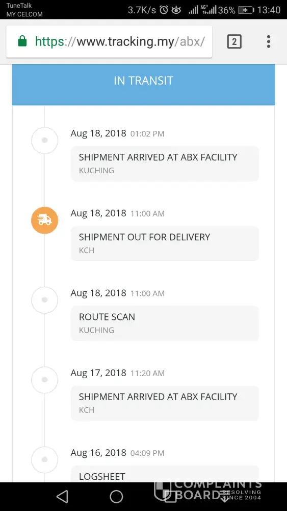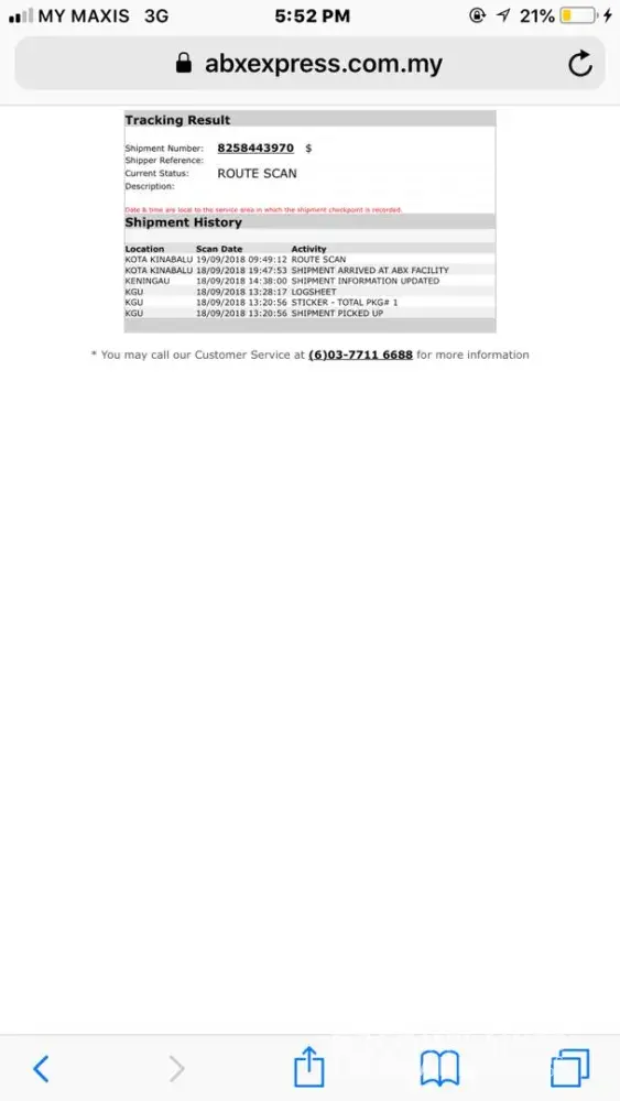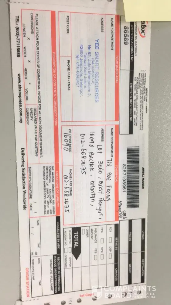 I already called to abx center and went to abx center at Kuching. The staff said will call me back after they refer to the driver. I wish feedback as soon as possible. My number is [protected] and email [protected]@hotmail.com