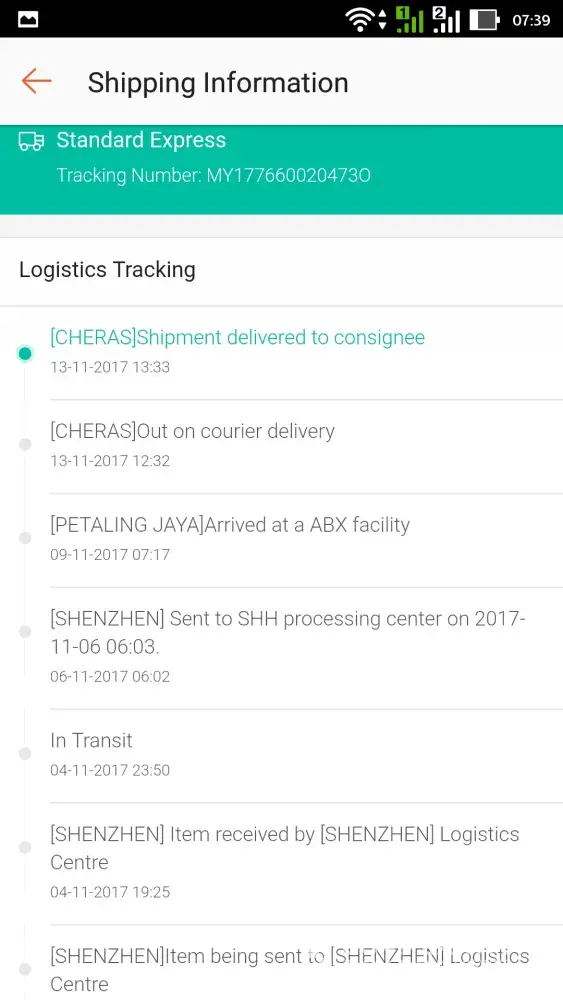 Hi.. Still not received my item sent by Shopee. Updated as "delivered to consignee" on 13.11.2017 13:33h. Till today 16.11.2017 still did not received. The tracking no of the item as in the picture attached. MY177660020473O If really delivered, i need to check who had signed upon received. I am at home 24hours ata itbis impossible i am not at home upon your staff sending it. Thank you