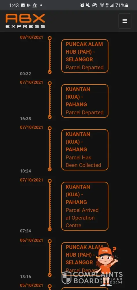 My parcel should be delivered by 5 oct... But until now its stuck for 4 days at abx kudat