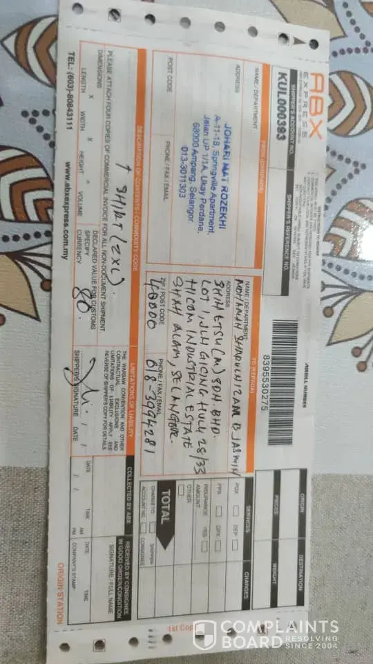 ABX Express Pihak abx tidak menghantar barang ke rumah
