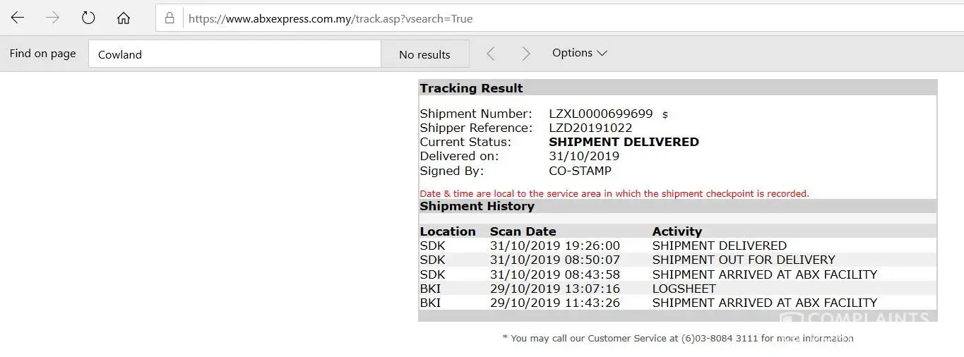 My shipment is reached Sandakan on 31/10/2019 according to the parcel tracking status. However, I didn't received the parcel. The ABX courier boy/ girl has delivered wrong address. I immediate send a complain email to ABX (sdk@abxexpress.com.my). However, no respond from ABX. I make a visit to ABX counter and requested them to checked. hey admitted they has delivered wrongly. The ABX's boss did not want make the compesation for his staff mis-conduct. the receiver ID no. is fake and uncontactable. So, am I need to beer the lost myself for ABX Sandakan mis-conduct. ABX Sandakan is a irresponsible company and no internal examination for the quality of customer service. Very poor and bad service in this customer service era. I always believe there is a good service courier service company to replace this ABX. Since they are incompeteable and untrustable/ unreliable.