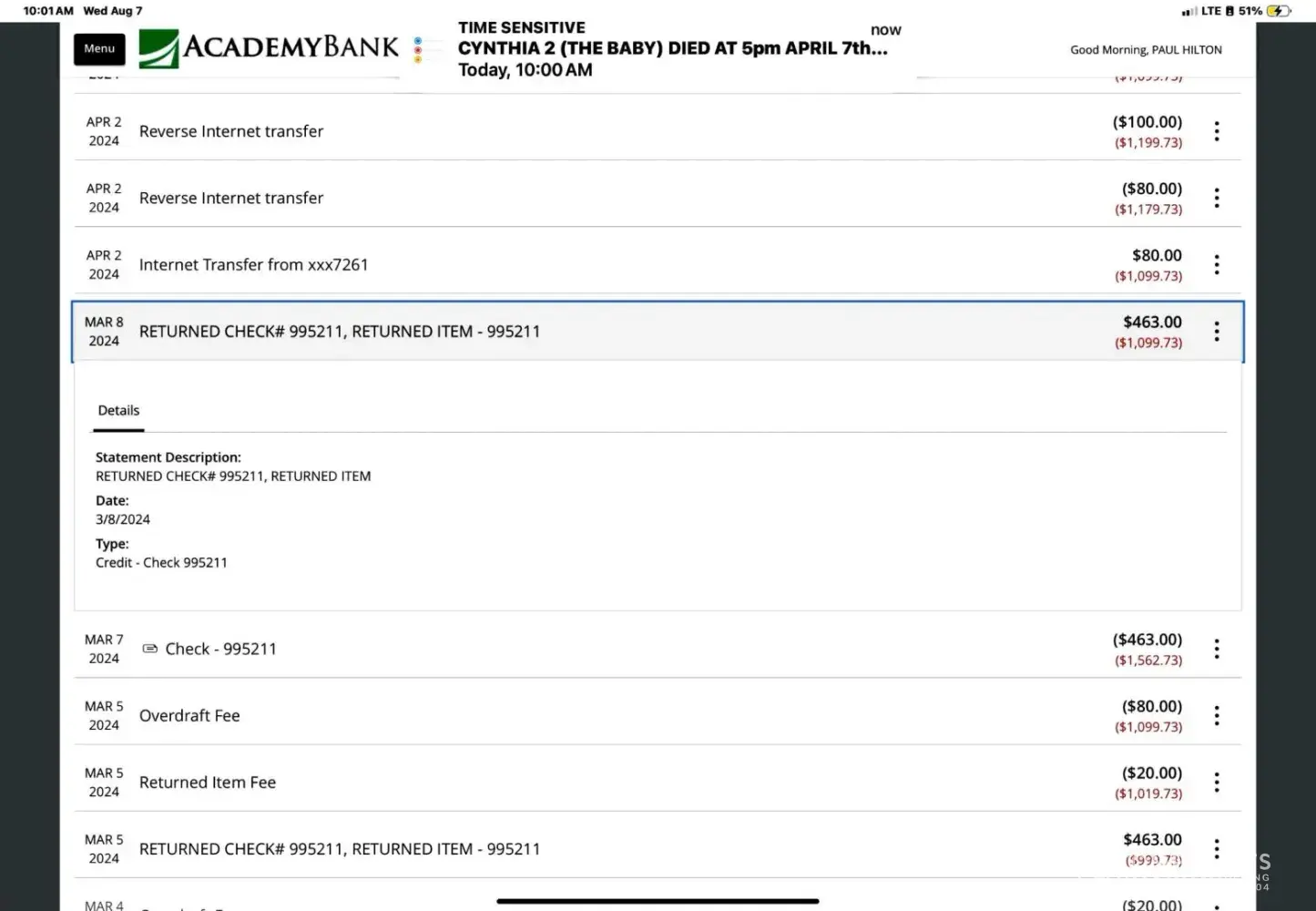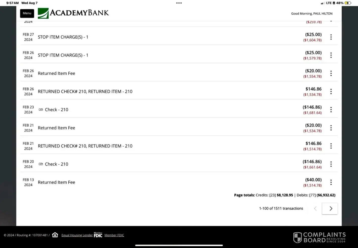 My name is Jimmy Marshall and I have been with academy bank for several years and this has happened almost every month for the past 4 years can you please put a stop to this ASAP I am a disabled veteran trying to get a home for me and my family we are living in our truck.