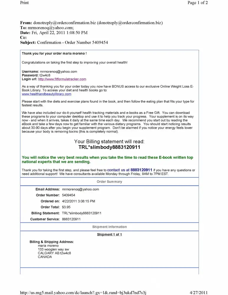 I was on-line and a side Pop up came up... about this wonder weight loss regiment... I read it over & everything looked legit... so I ordered.