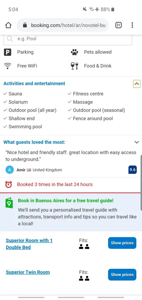 Hello, we booked Novotel in Buenos aires for 10 days for the main reason because a swimming pool ans turkish sauna was advertised on the website. When we arrived, we discovered the the swim pool is seasonal and the sauna does not exist anymore. I think it s a serious issue, you misguided us for 10 days of our holidays. What should we do now? That situation is really upsetting.