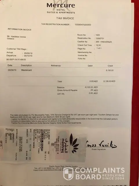 As stated above, I will be making a formal complaint to Accor as I am certain the behaviour stated in this email, breaks a number of their standards.