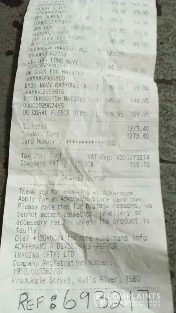 I have applied for an account an they have let me known i can come and collect my card.when i bought stuff the card declined and no one came back too me i was standing like a fool.since today after alot of calls and emails ackermans did not come back to me.
