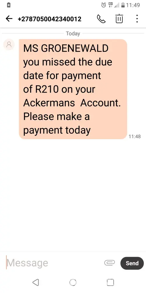 I have a account with Ackermans and am I very dissapointed as is it now the second time this year that it is stated that my payment is overdue, but have I arranged since I have opened the account for debit order. I find this very unprofessional as it seems that I am a bad payer, I do not gwt feedback on my emails but keep recwiving messages that I do need to make a payment NOW. I need to go in store to arrange for a debit order all the time. The system definitely needs some improvement
