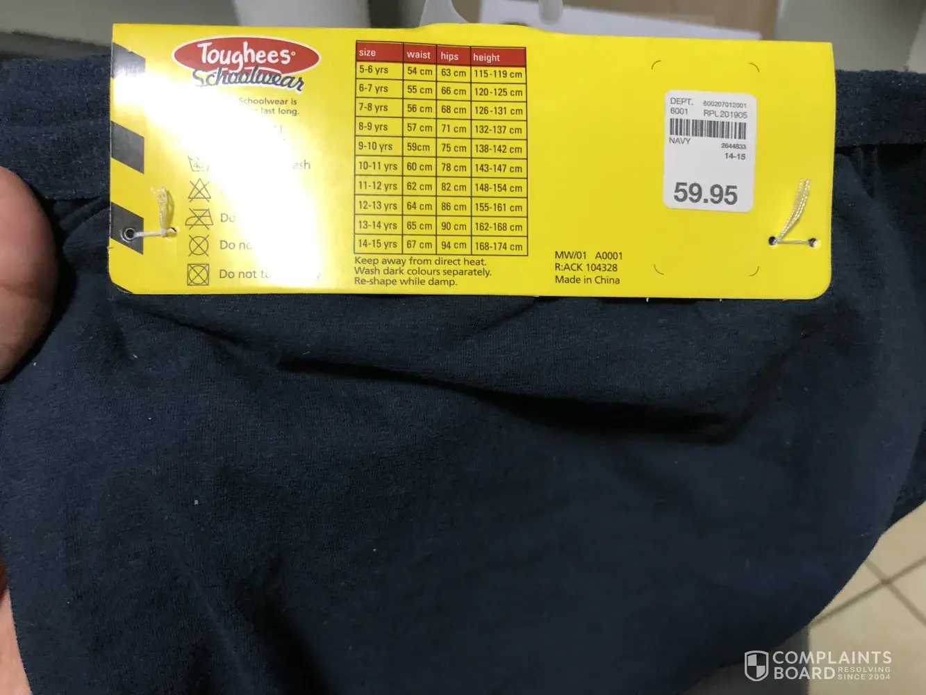 After returning it on Monday to swop we where advised that there where no label atached.