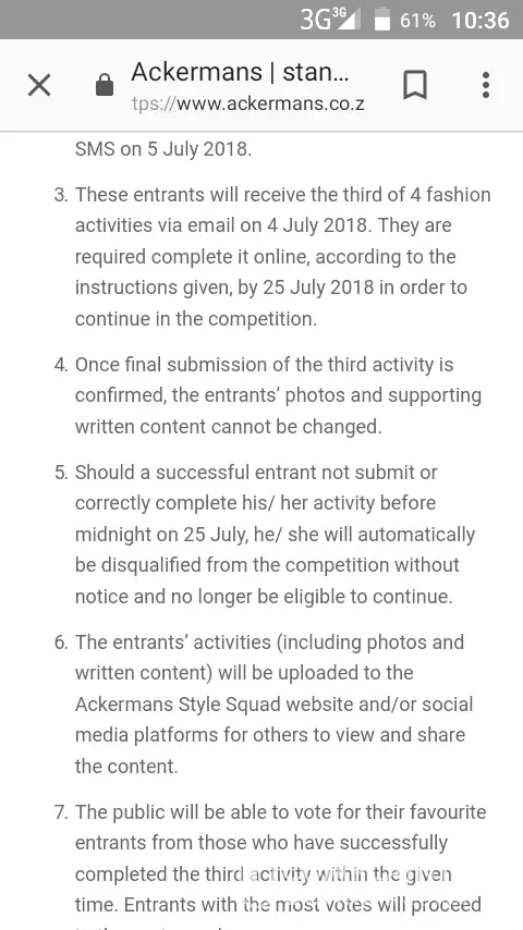 Ackerman's rules state that if entrant did not "submit or correctly complete" the activity they would be disqualified. 5 of the Top 20 did not complete the last activity correctly which was to draw and design their own pattern. Ackerman's response is that it could be due to language barriers, that something although not correct was submitted and that the winners will be chosen by panel of judges to ensure they are judged on following instructions, creativity ect. 1 of the Top 20 finalists has been removed and not replaced, when I queried that there was no picture at all submitted for the task. The response was it may be a technical error. This situation is very unfair, why have tasks if it didn't matter if they were completed correctly? This is unfair as 5 entrants have been robbed of been finalists as Ackerman's has not applied it's own rules!
