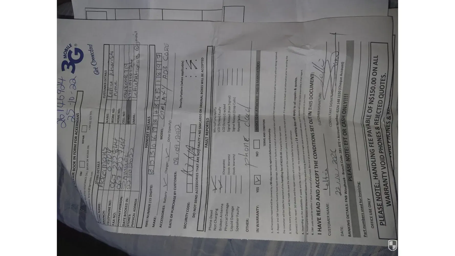 Having a complaint of a phone I brought in Ackermans Tsumeb Namibia it's A03core on 08.09.2022 and not even long have I stayed with the phone and it started freezing, I complaint to the manager but they just to me they will give it in to 3g .but when they send in the phones the phone came the with same problem,please help I don't get enough customer care in Tsumeb Ackermans. [protected]