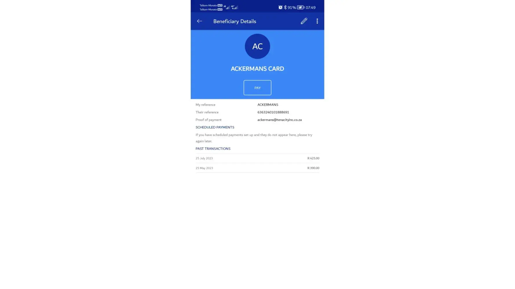 I took the initiative and went to Ackermans Eastgate to make paymet on my account, the consultant at the customer service counter refused to assist me as she said that without the card they cannot assist me even though I offered to give her my id number, she told me she was to busy to call the Head Office, so I walked out very disappointed with the service I received. I then found out that I have been ITC listed for R389, which I paid via EFT on the 23 May and was then R472.23 but I was not removed from ITC, I was trying to buy a car and was told am written off as a bad debt. I want to be removed from ITC as I have made a payment, they are quick to list you but do not delist.