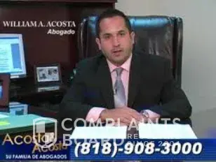 Disque "abogados" WILLIAM A. ACOSTA (hijo) y MARIO L. ACOSTA (padre) dicen: "este caballero tubo 3 abogados y a todos los despidió"("this gentlemen had 3 prior attorneys that he fired") claro que si! el #1, me trato como si ella me estuviera pagando y no es así amigos los abogados trabajan para nosotros. #2, tenia y todavía tiene una lista larga de quejas y infracciones en las oficinas legales the California State Bar asociación de abogados de California, además descubrí que tiene fama de tramposo y ilegalmente negocio con el abogado opuesto. #3, fueron estos dos disque "abogados" WILLIAM A. ACOSTA (hijo) y MARIO L. ACOSTA (padre) trafugas ladrones sin suficiente educación ejerciendo nuestras leyes en Estados Unidos de América como si vivieran en Cuba en Cuba se sabe muy bien que las leyes y los abogados son completamente corruptos!