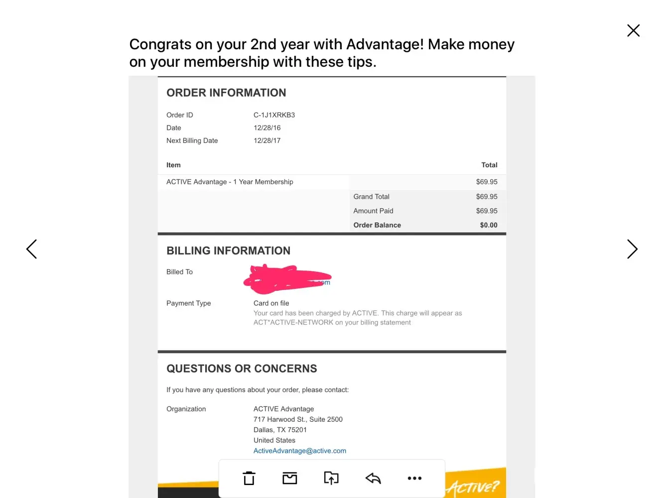 I registered for an event sponsored through my doctor's office to raise money for Lymphedema about a month ago. Today I received the attached email saying my trial membership was converted into an annual membership for the rate of $64.95. I didn't know what this was, but I'm resourceful, and figured it out after Googling Active Advantage, who others had also been scammed by. Evidently there's something you have to UNCHECK or you're enrolled in their trial membership to something - I have no idea what the trial membership is for. In the month since I donated to this Lymphedema event, I have NEVER received an email or anything else which communicates to me that I'm a member, and what that entails, or that my trial membership was ending and that I'd be charged $64.95 if I didn't cancel. Additionally, I never saw anything like this on the website saying that I was enrolling in something and that I'd be charged $64.95 after 30 days. I would **NEVER** enroll in ANYTHING for a $64.95 monthly fee. CLOSE THESE SCAMMERS DOWN, PLEASE! Thanks, and please let me know if you require additional info. Cathie [protected]@cathieway.com
