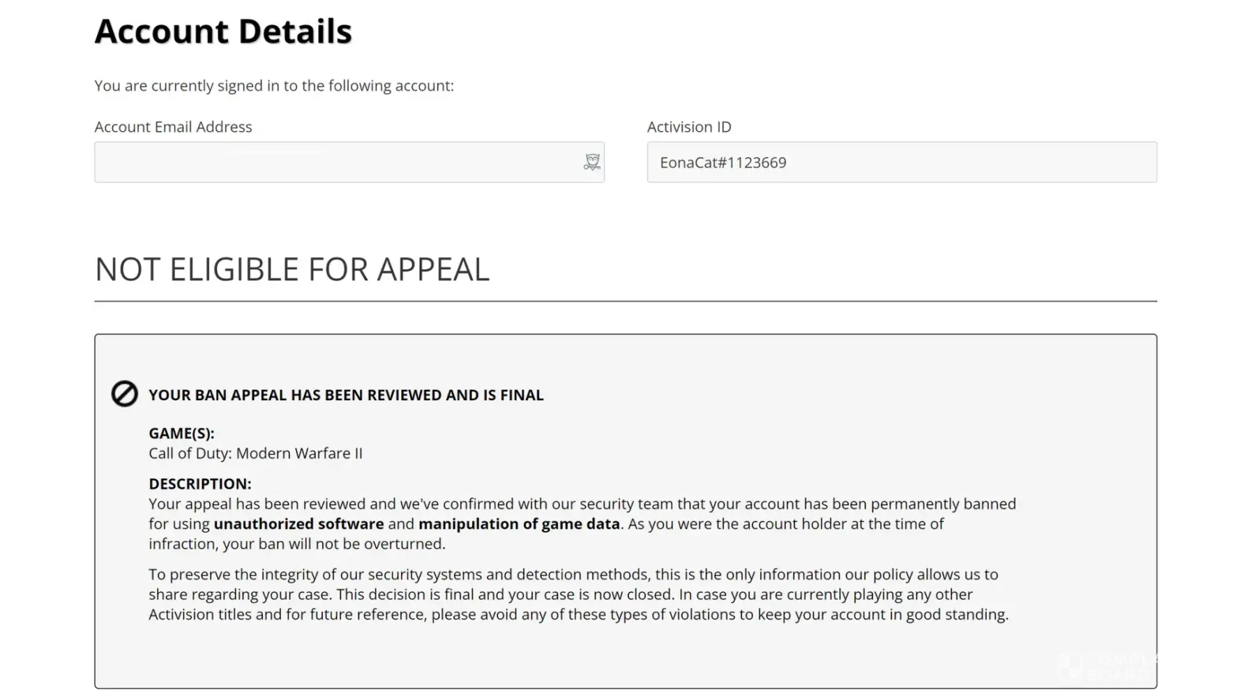 I have been using this account to play Warzone previously, Call of Duty Cold War, etc. So I am confused why I am banned on Modern Warfare II randomly, after looking up reasons for why it could happen, I do not have any cheats or software of that kind on my PC.