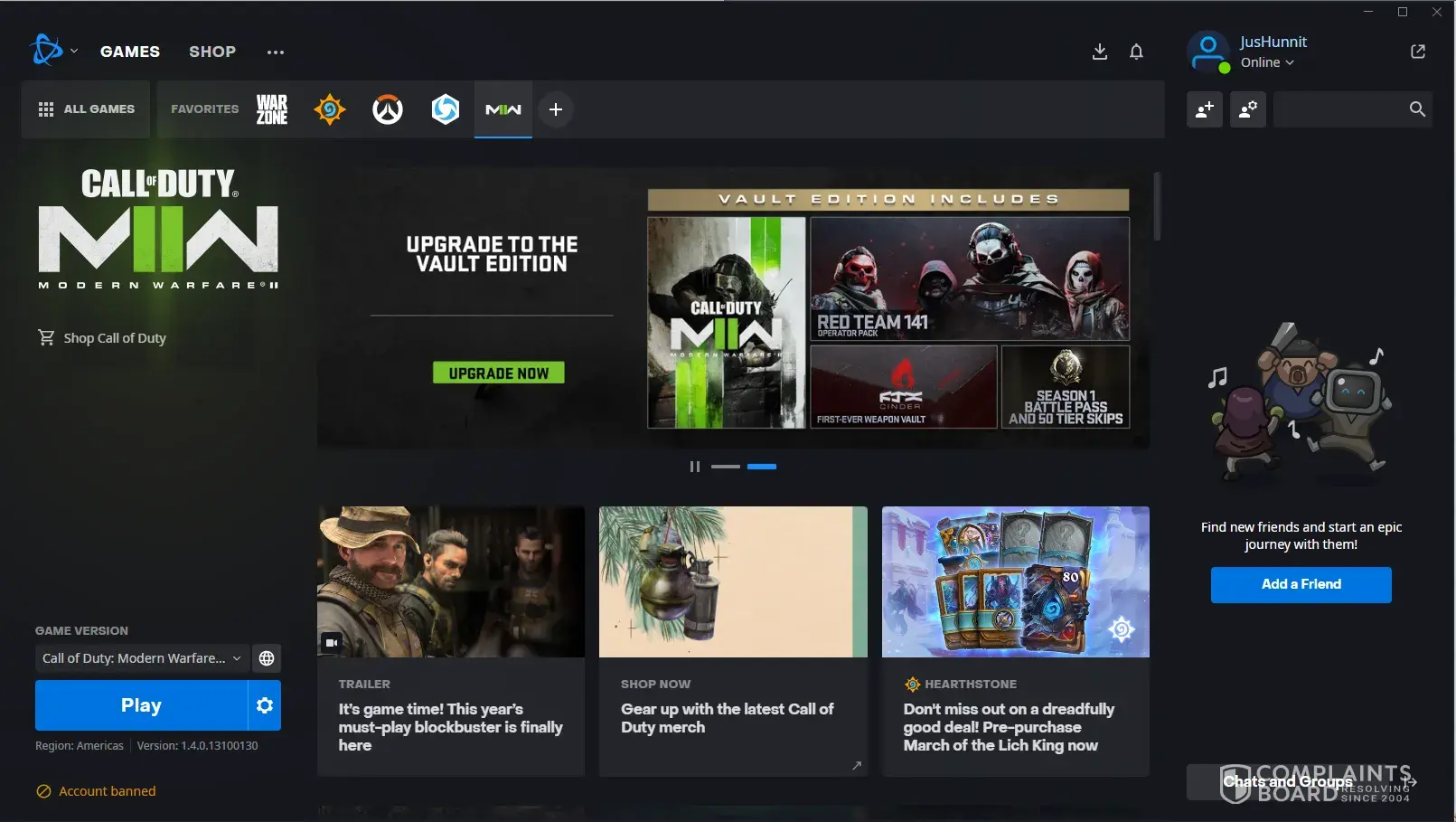 I purchased Call of Duty: Modern Warfare II on 03/11/2022. I have played it maybe 3 or 4 times with friends within that period. I went to go and play it today and it says my account is permanently banned.